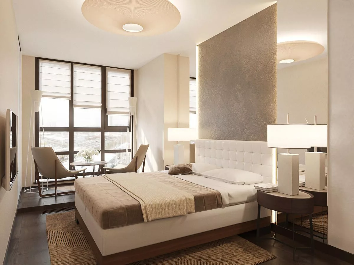 Комфортный номер с двуспальной кроватью в спокойной бежевой гамме.